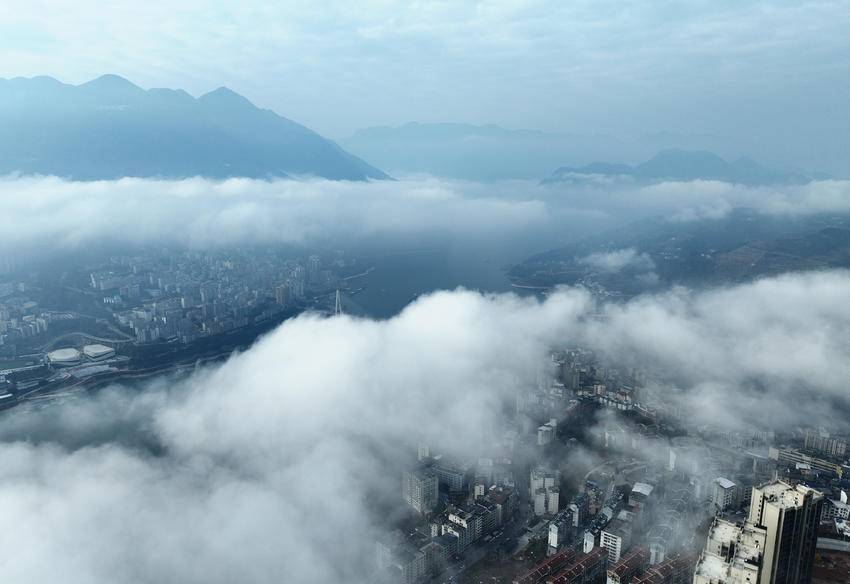 2月18日清晨,巴东县长江巫峡口被厚重的云雾包裹,朦朦胧胧,时而缠绕峰腰,时而横卧江心,时而漫天飞舞,宛如大自然最温柔的笔触和流动的水墨画。