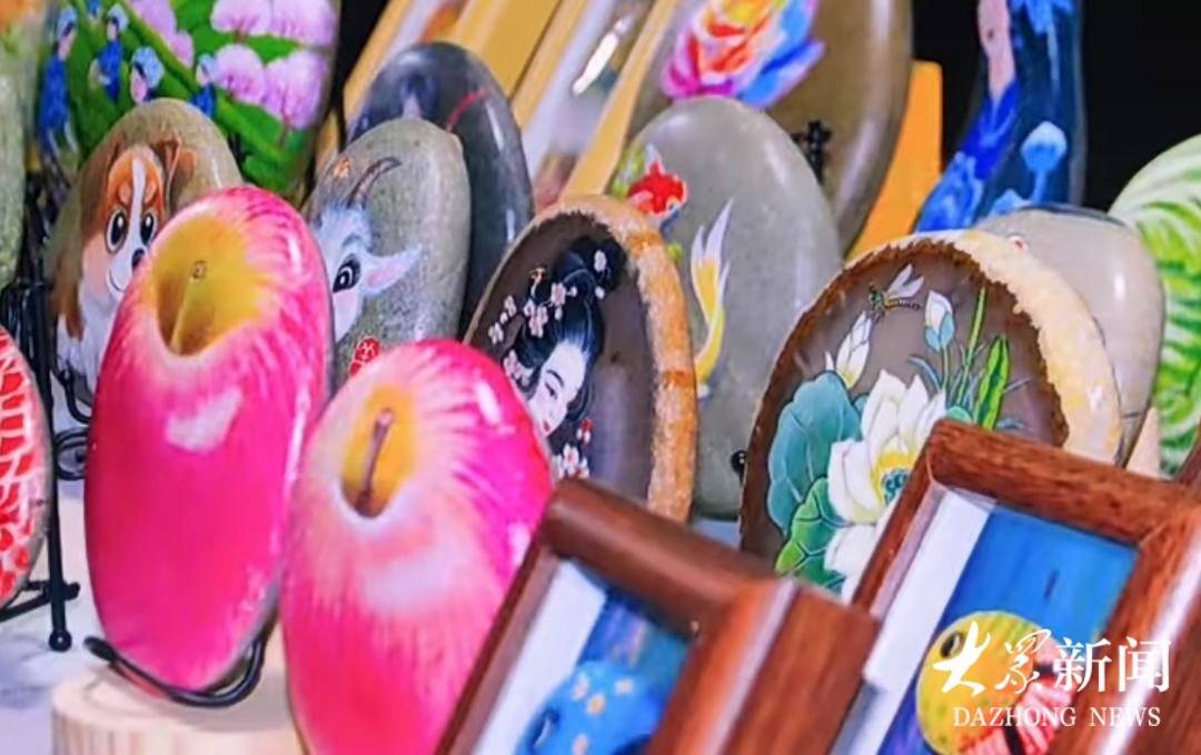 一旁,日照市岚山区区级非物质文化遗产“安东卫石头画”代表性传承人吴智玲的摊位前也围满了好奇的年轻人。“这个小马背上顶着个红色葫芦,寓意是‘马上得福禄’,必须得整一个。”“00后”游客张鑫挑选了一幅马年石头画,小心翼翼地把它装进背包,“爸妈买年货追求量大、实惠、体面,我只考虑情绪价值。”