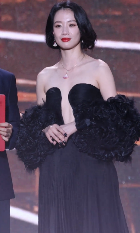在其他女明星都穿着礼服长裙登场的情况下,郭宇欣选择了更为干练简单的小套装,扎着一个高马尾辫,看起来特别有体制内高智感女性的样子。